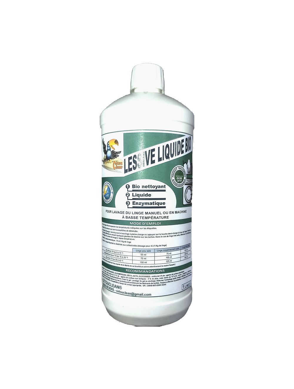 LESSIVE LIQUIDE BIO NETTOYANT pour lavage du linge manuel ou en machine à basse température